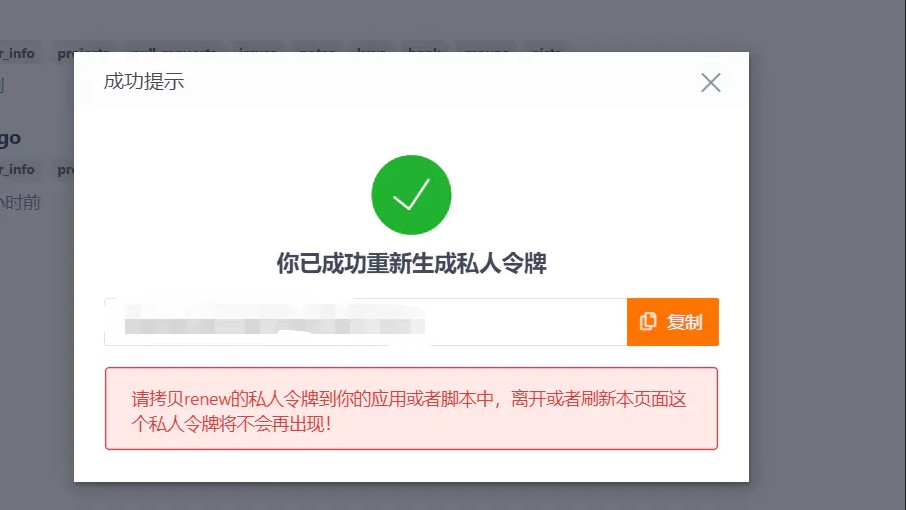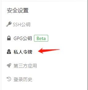 在左侧的安全设置中找到私人令牌,点进去。在点击右上方橘红色的生成新令牌